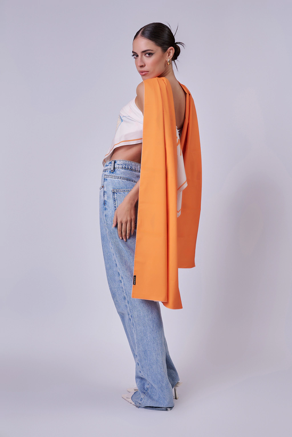 O lenço possui toque de viscose, caimento leve e é duplo, um lado estampado e outro liso. Tem o tamanho bastante versátil e pode ser usado de inúmeras formas, como peça de roupa, saída de praia ou acessório.