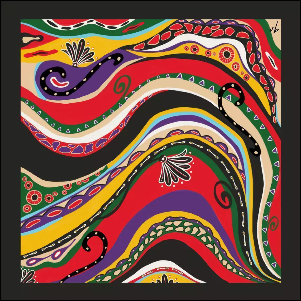 Lenço. A estampa Sevilla captura a essência flamenca e a riqueza cultural da cidade andaluza. Com suas cores vibrantes, como o vermelho, amarelo e preto, remete à paixão do flamenco, às touradas e à alegria das festividades locais. Os movimentos curvilíneos simbolizam a fluidez da dança, enquanto os detalhes inspirados em elementos decorativos tradicionais refletem o artesanato e a arquitetura mourisca presentes em Sevilla.